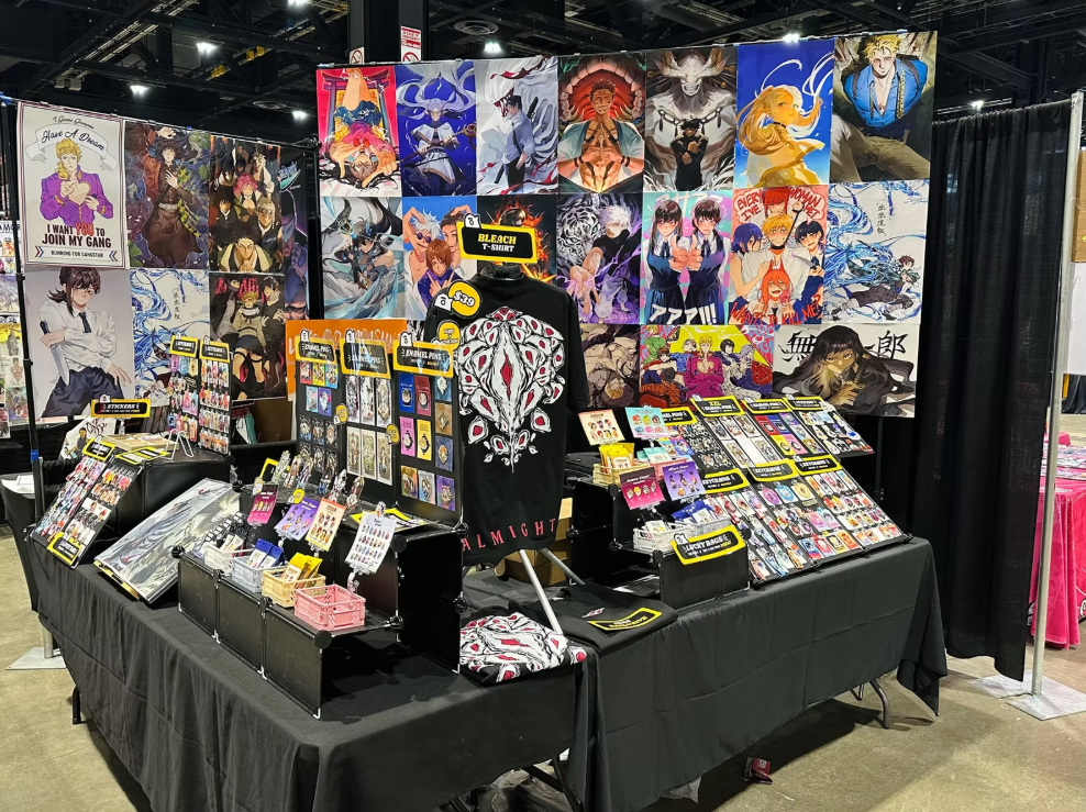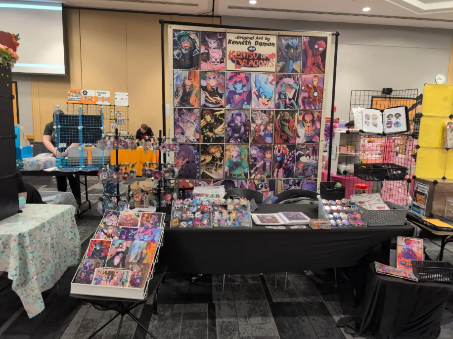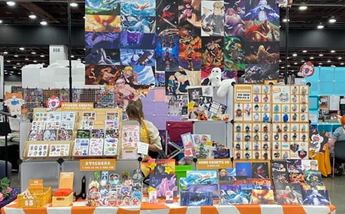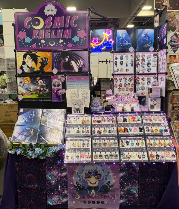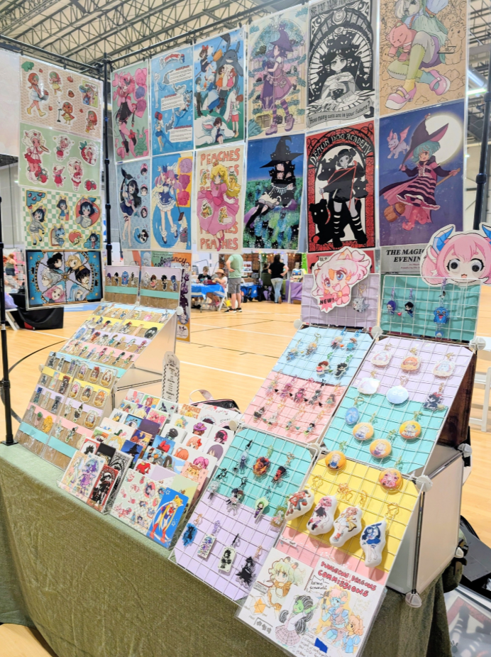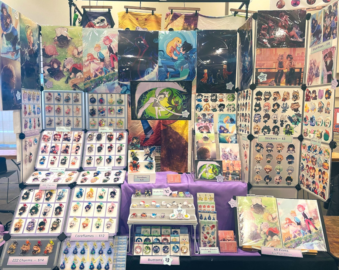 Art prints, stickers, buttons, keychains, all pertaining to anime and various pop culture