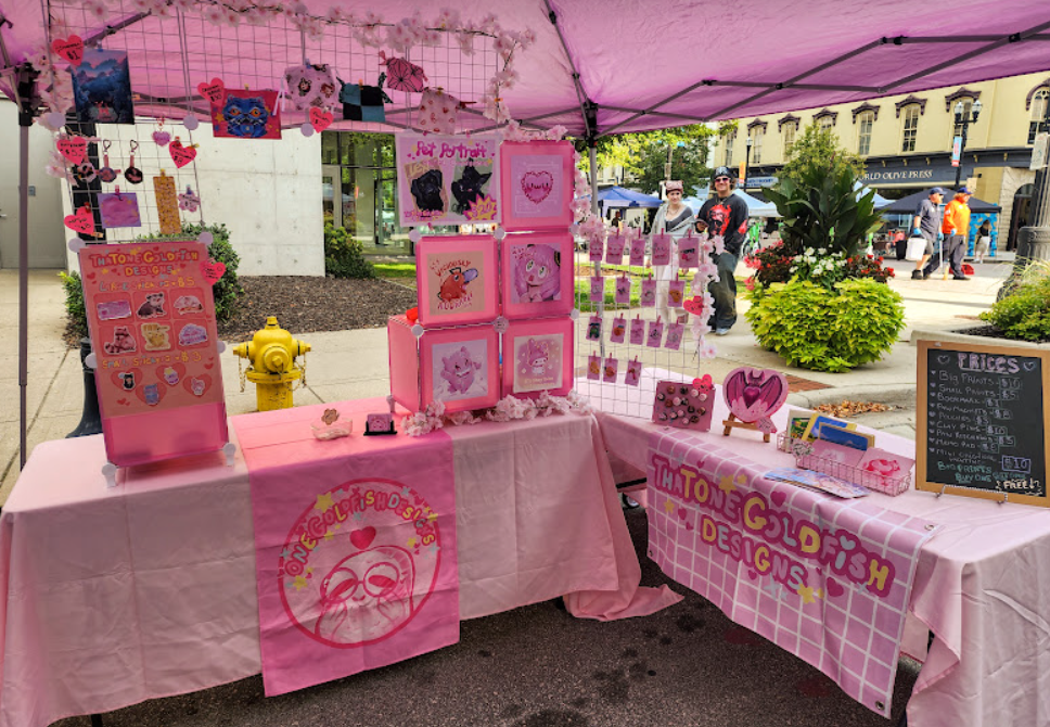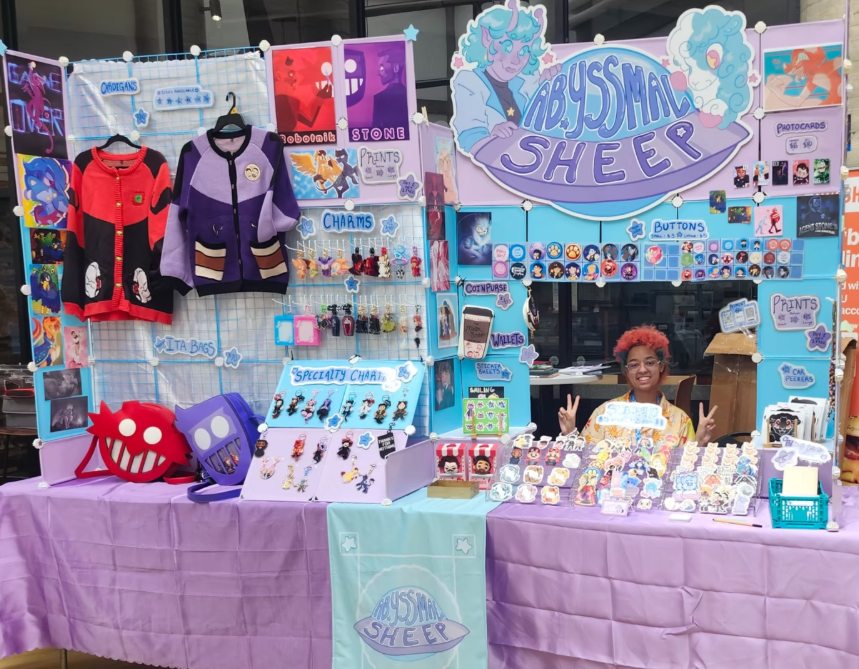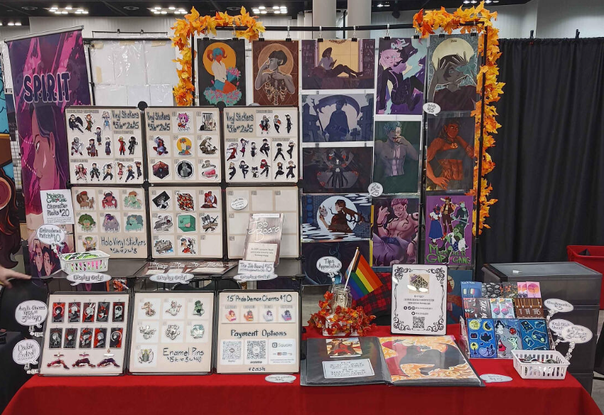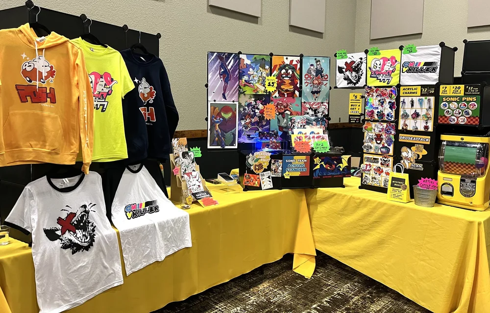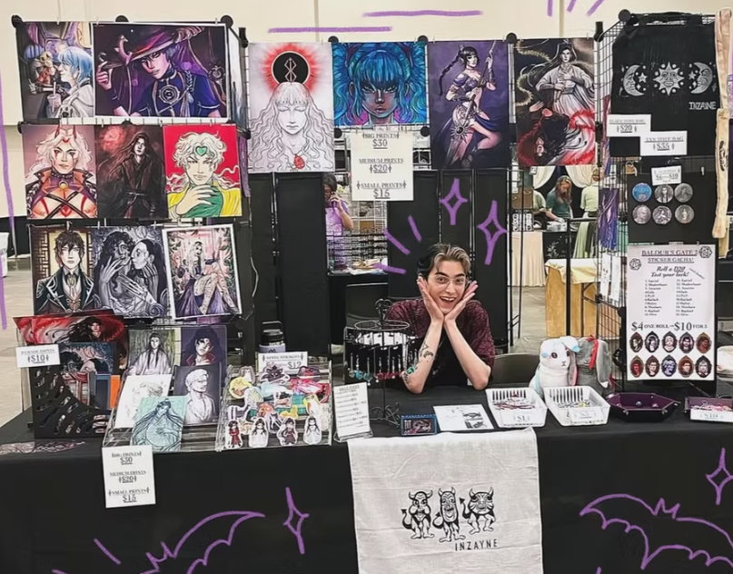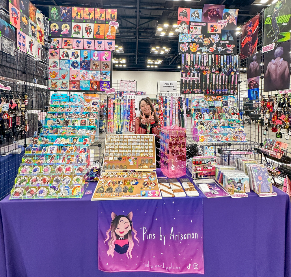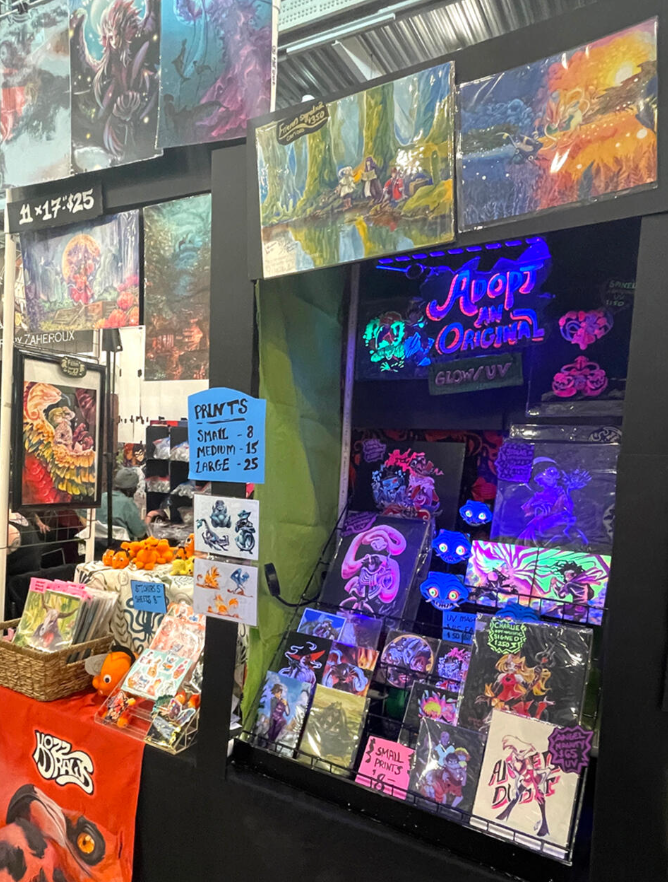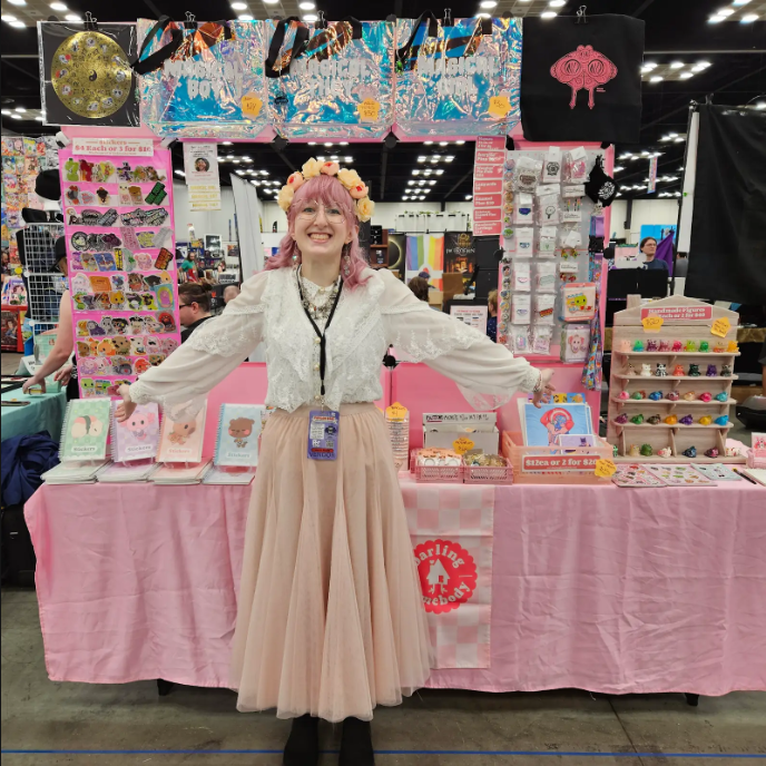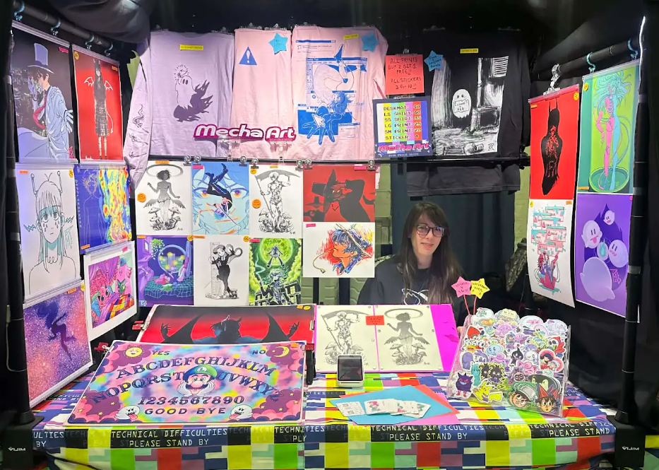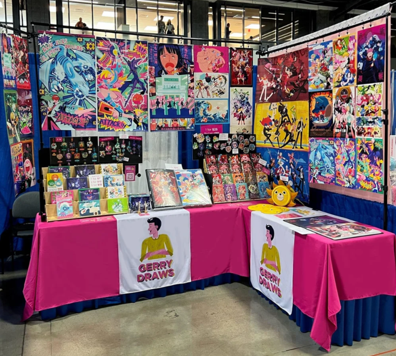 stickers / pins / charms / prints / standees / apparel / zines / on site custom ink drawings
