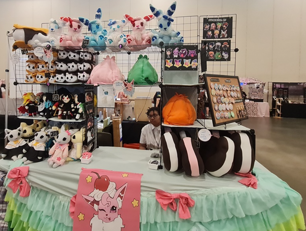 Selling custom Dakimakura, Pillow Plush, Handmade Plush, Self Published Comics, Self Published RPG Books, Art Prints, Lanyards, Charms, Keychains, Wall Scrolls, Desk Mats, Premium Hoodies, Pin-back Buttons, Acrylic Standees